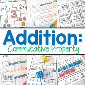 In first grade, I like to call these turn-around or flip-flop facts. Giving this abstract property a playful name makes it more concrete for students. Be sure to also introduce the correct math vocabulary but pairing it with a kid-friendly nickname helps the concept click.