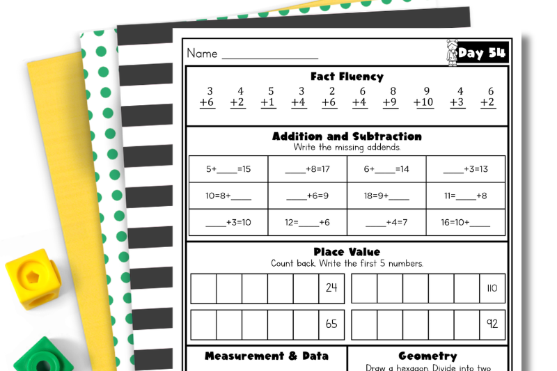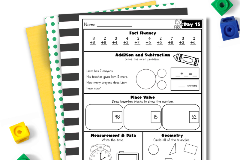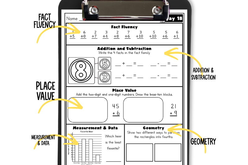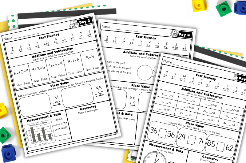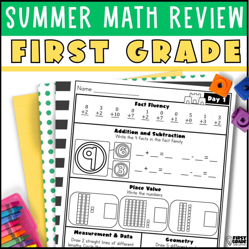 That’s exactly why I created this Summer Math Review Packet. Each day focuses on 5 key first grade math standards: